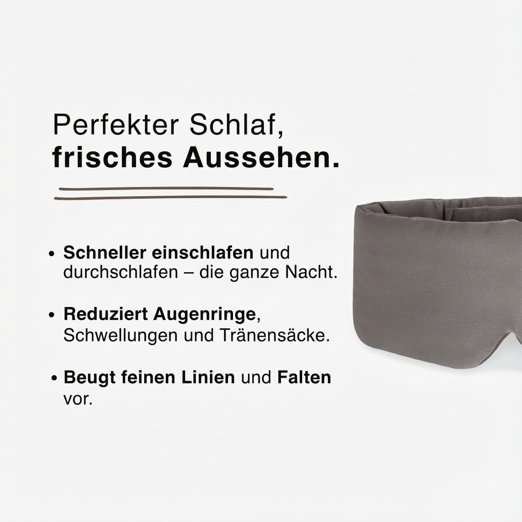Müheloser Schlaf mit unserer 100% lichtblockierenden Tiefschlafmaske aus Premium-Seide.